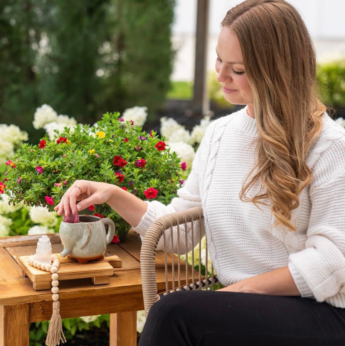 🧘🏼♀️ Will Bring Style to Any Spot: When the elephant mug, farmhouse beads, and rustic wood stand are not being used for tea, they become a lovely display piece that adds a touch of class and charm to your kitchen counter, coffee table, office desk, or bookshelf