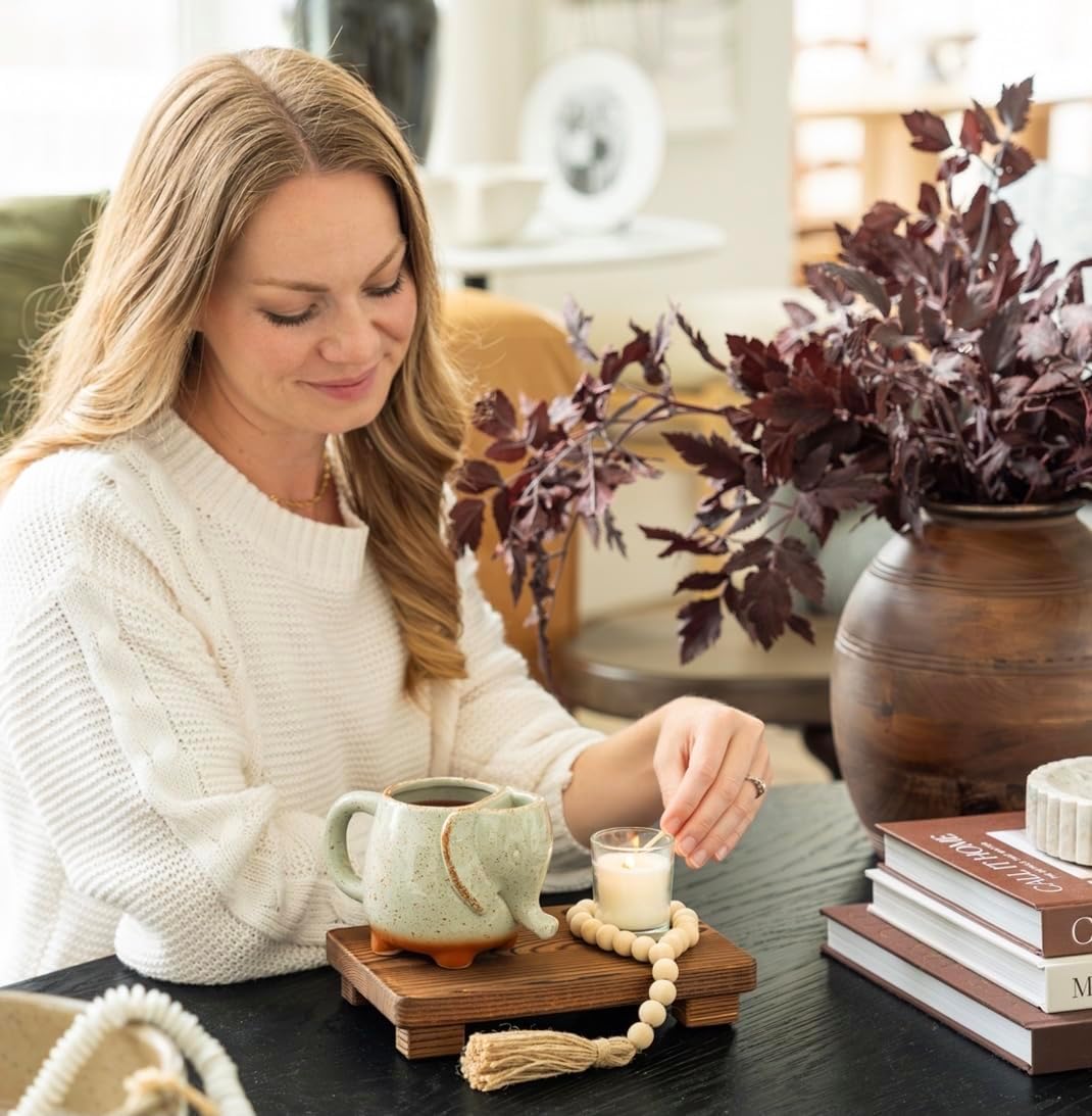 🧘🏼♀️ Will Bring Style to Any Spot: When the elephant mug, farmhouse beads, and rustic wood stand are not being used for tea, they become a lovely display piece that adds a touch of class and charm to your kitchen counter, coffee table, office desk, or bookshelf