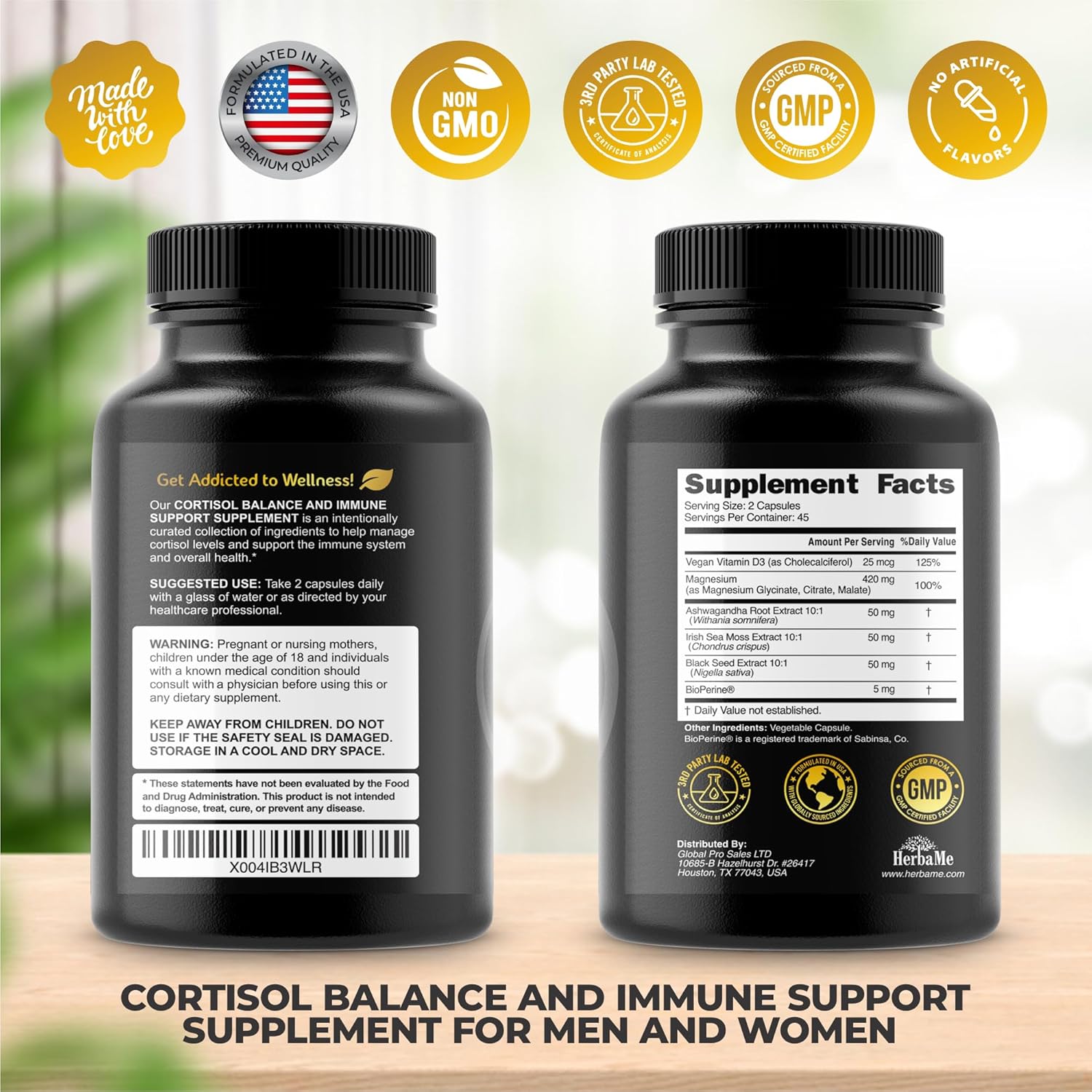 8 reviews for Cortisol Balance and Immune Support Supplement with Ashwagandha, Irish Sea Moss, Black Seed, Vitamin D and Magnesium Complex | Mood Enhancer | Immunity Booster | Stress Relief Pills | 90 Capsules