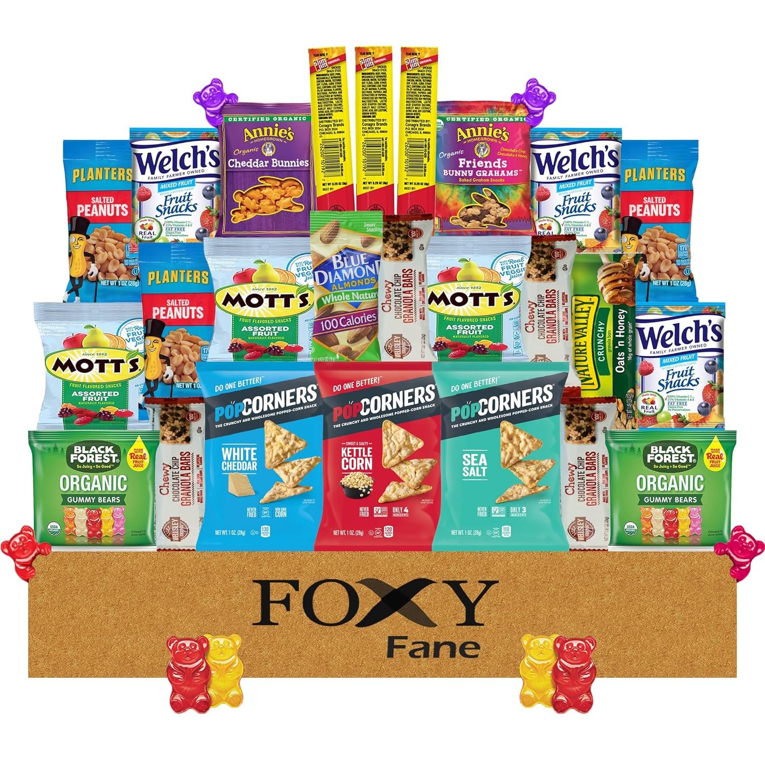 Foxy Fane 25ct Wholesome & Nutritious Snack Box – Ultimate Gift Care Package of Delicious Snacks for all Occasions (25 Snacks)