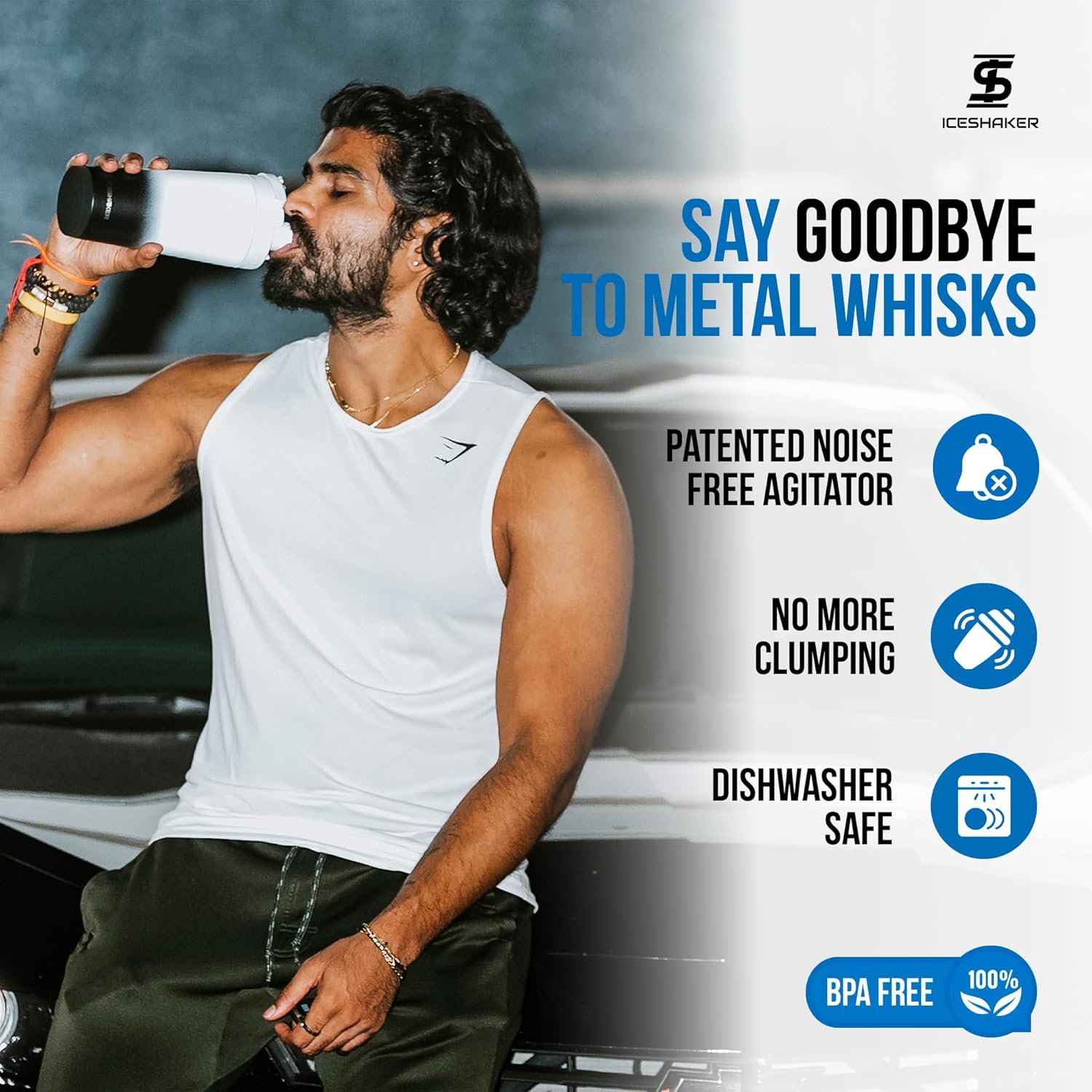 30+ HOURS ICE COLD — Double-wall vacuum insulation in this stainless steel protein shaker bottle keeps drinks chilled for over 30 hours, preventing condensation and maintaining temperature