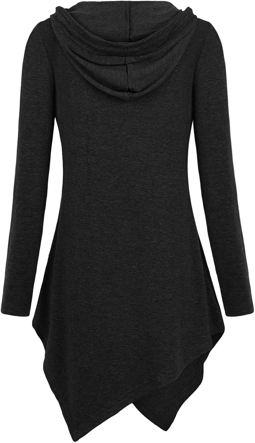Miagooo Uneven Hemline Hoody Shirt Pocket Tunic Long Sleeve Casual Tops